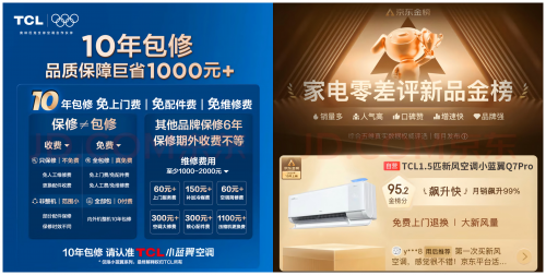 智能制造与金牌服务,TCL空调铸就市场信任基石 出色的产品力离不开强大的制造体系作为支撑。TCL空调武汉智能制造基地采用全球首条无尘新风空调专用生产线,以严苛工艺确保了产品的高品质与一致性。 这一卓越品质也在市场上获得了验证——TCL空调与京东合作的旗舰产品 TCL小蓝翼Q7 Pro AI健康空调凭借零差评的用户口碑,荣登京东家电"0差评新品金榜"。与此同时,TCL空调为TCL小蓝翼系列空调提供了十年免费包修服务,并与京东合作提供"当天买当天装"的极速服务,以前瞻性的服务布局彻底解决了用户的后顾之忧,赢得了市场的广泛信赖。
